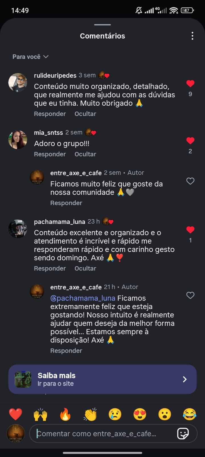 "Quero entender o PORQUÊ, não só fazer mecanicamente. Quero sentir o Axé."